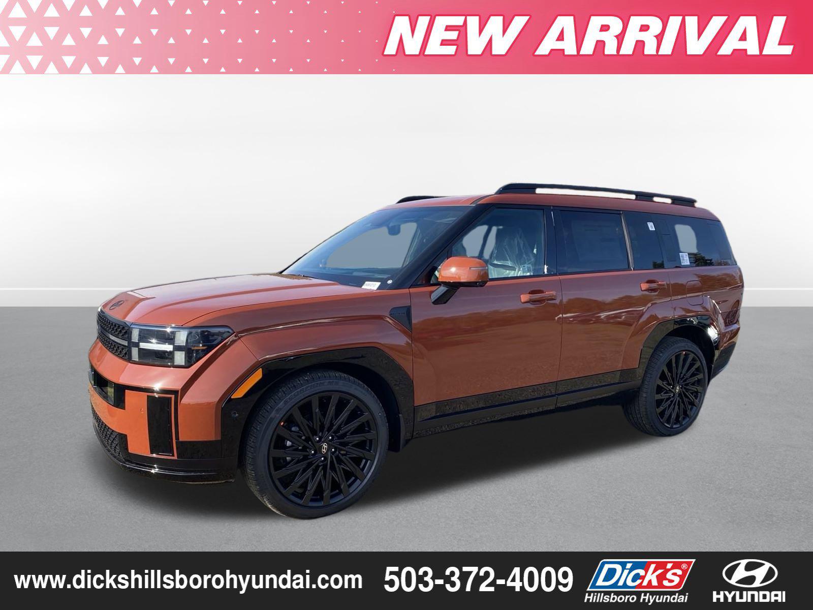 2025 Hyundai Santa Fe Calligraphy Terracotta Orange AWD 2.5L I4 ShiftronicAWD, Black Leather, 12 Speakers, 3rd row seats: bench, 4-Wheel Disc Brakes, ABS brakes, Air Conditioning, Alloy wheels, AM/FM radio: SiriusXM, Apple CarPlay & Android Auto, Auto High-beam Headlights, Auto-dimming Rear-View mirror, Automatic temperature control, Brake assist, Bumpers: body-color, Cargo Net, Cargo Tray, Carpeted Floor Mats, Delay-off headlights, Driver door bin, Driver vanity mirror, Dual front impact airbags, Dual front side impact airbags, Electronic Stability Control, Emergency communication system, Exterior Parking Camera Rear, First Aid Kit, Four wheel independent suspension, Front anti-roll bar, Front Bucket Seats, Front Center Armrest, Front dual zone A/C, Front reading lights, Fully automatic headlights, Garage door transmitter: HomeLink, Heads-Up Display, Heated & Ventilated Front Bucket Seats, Heated door mirrors, Heated front seats, Heated rear seats, Heated steering wheel, Illuminated entry, Knee airbag, Leather steering wheel, Low tire pressure warning, Memory seat, Mudguards, Navigation System, Occupant sensing airbag, Option Group 01, Outside temperature display, Overhead airbag, Overhead console, Panic alarm, Passenger door bin, Passenger vanity mirror, Power door mirrors, Power driver seat, Power Liftgate, Power moonroof, Power passenger seat, Power steering, Power windows, Premium Nappa Leather Seat Trim, Radio: AM/FM/HD Bose Premium Audio System, Rain sensing wipers, Rear anti-roll bar, Rear side impact airbag, Rear window defroster, Rear window wiper, Remote keyless entry, Roadside Assistance Kit, Security system, Speed control, Speed-sensing steering, Split folding rear seat, Spoiler, Steering wheel mounted audio controls, Tachometer, Telescoping steering wheel, Tilt steering wheel, Traction control, Trip computer, Turn signal indicator mirrors, Variably intermittent wipers, Ventilated front seats, Wheels: 21 x 8.5J Unique Dark Finish Alloy, AWD, Black Leather.20/28 City/Highway MPG