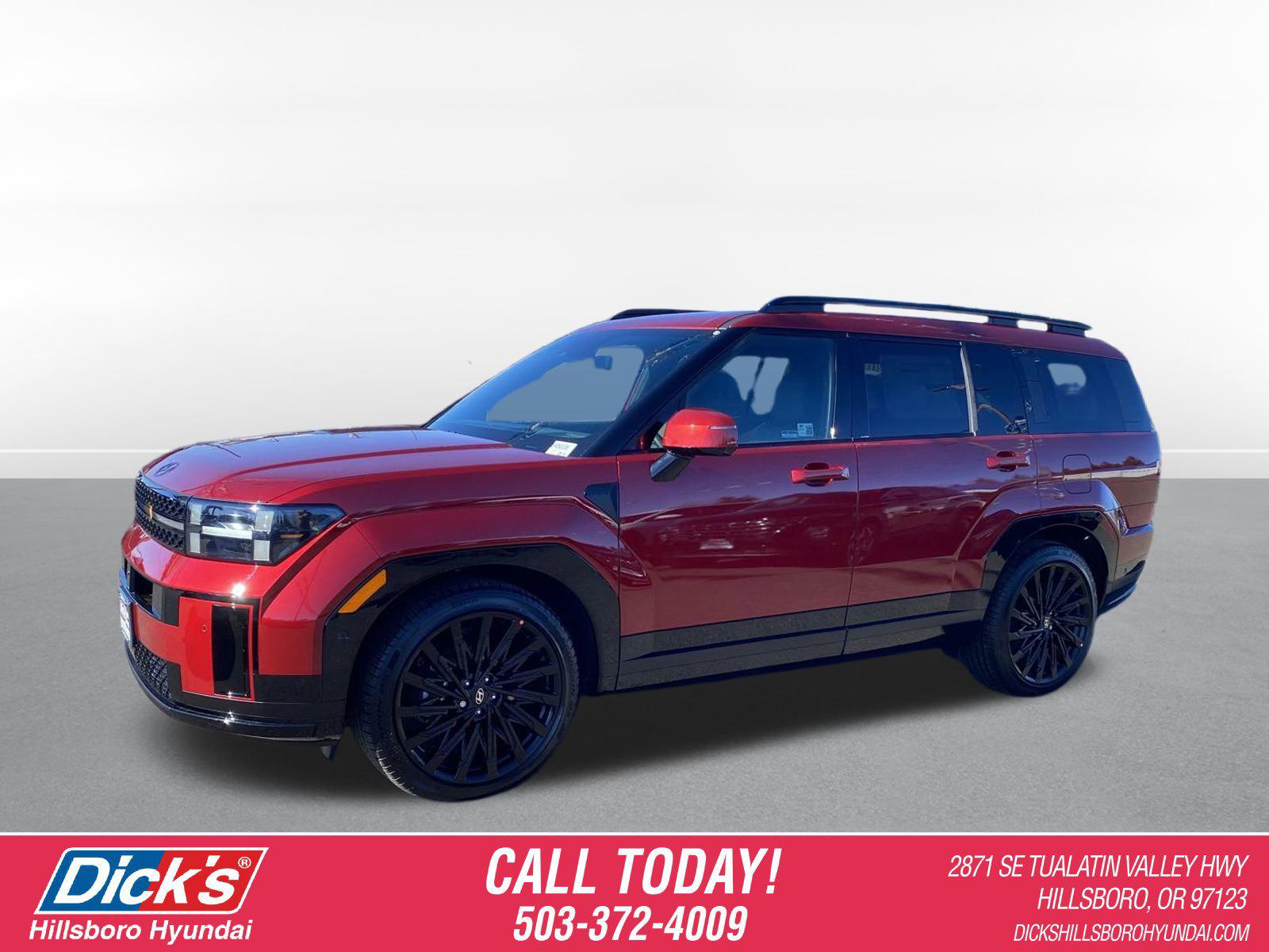 2025 Hyundai Santa Fe Calligraphy Ultimate Red AWD 2.5L I4 ShiftronicAWD, Black Leather, 12 Speakers, 3rd row seats: bench, 4-Wheel Disc Brakes, ABS brakes, Air Conditioning, All Season Fitted Liners, Alloy wheels, AM/FM radio: SiriusXM, Apple CarPlay & Android Auto, Auto High-beam Headlights, Auto-dimming Rear-View mirror, Automatic temperature control, Brake assist, Bumpers: body-color, Cargo Cover/Screen, Cargo Net, Cargo Organizer, Cargo Tray, Delay-off headlights, Driver door bin, Driver vanity mirror, Dual front impact airbags, Dual front side impact airbags, Electronic Stability Control, Emergency communication system, Exterior Parking Camera Rear, First Aid Kit, Four wheel independent suspension, Front anti-roll bar, Front Bucket Seats, Front Center Armrest, Front dual zone A/C, Front reading lights, Fully automatic headlights, Garage door transmitter: HomeLink, Heads-Up Display, Heated & Ventilated Front Bucket Seats, Heated door mirrors, Heated front seats, Heated rear seats, Heated steering wheel, Illuminated entry, Knee airbag, Leather steering wheel, Low tire pressure warning, Memory seat, Navigation System, Occupant sensing airbag, Option Group 01, Outside temperature display, Overhead airbag, Overhead console, Panic alarm, Passenger door bin, Passenger vanity mirror, Power door mirrors, Power driver seat, Power Liftgate, Power moonroof, Power passenger seat, Power steering, Power windows, Premium Nappa Leather Seat Trim, Radio: AM/FM/HD Bose Premium Audio System, Rain sensing wipers, Rear anti-roll bar, Rear side impact airbag, Rear window defroster, Rear window wiper, Remote keyless entry, Security system, Speed control, Speed-sensing steering, Split folding rear seat, Spoiler, Steering wheel mounted audio controls, Tachometer, Telescoping steering wheel, Tilt steering wheel, Traction control, Trip computer, Turn signal indicator mirrors, Variably intermittent wipers, Ventilated front seats, Wheel Locks, Wheels: 21 x 8.5J Unique Dark Finish Alloy, AWD, Black Leather.Recent Arrival! 20/28 City/Highway MPG