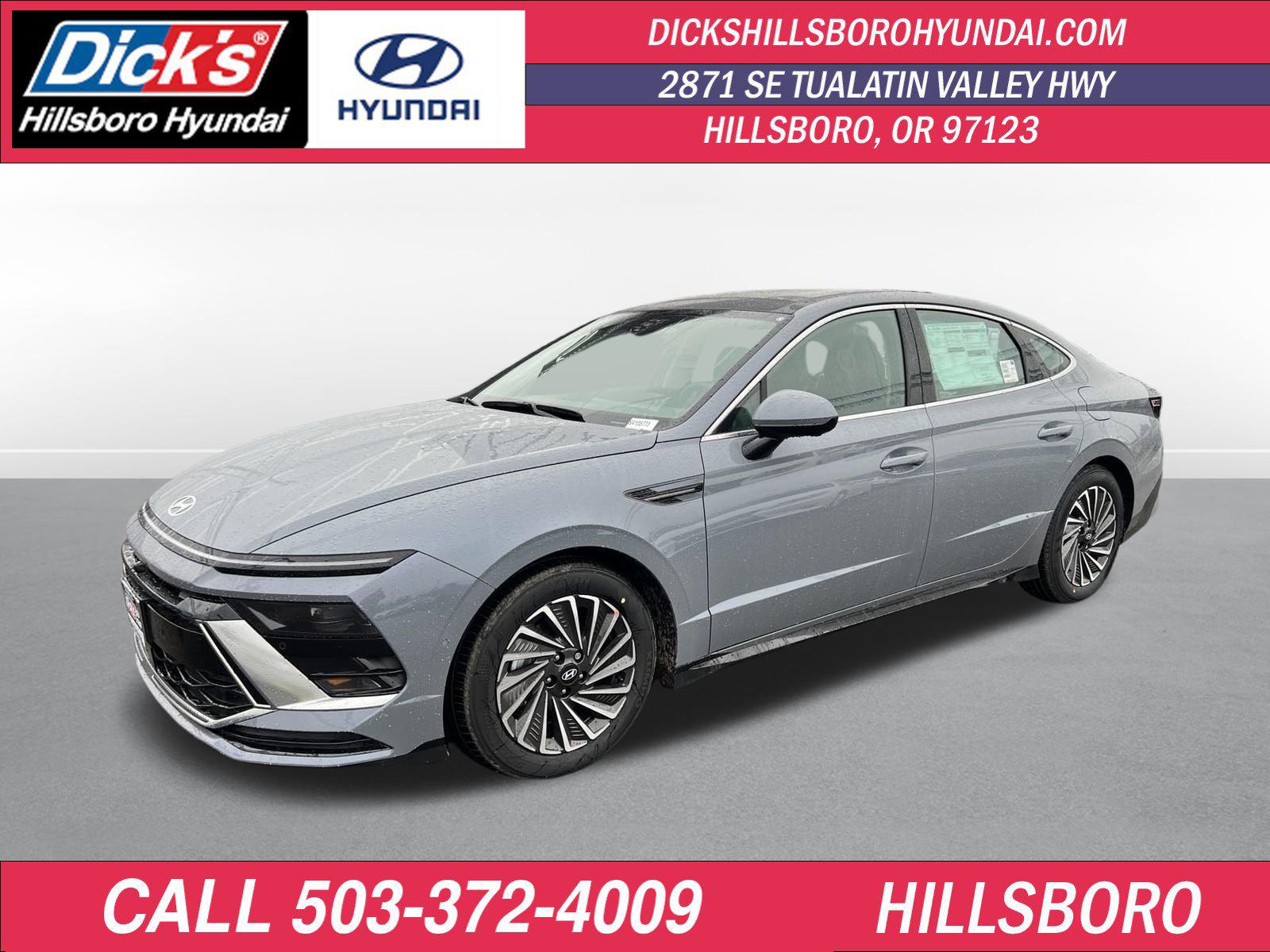 2025 Hyundai Sonata Hybrid Limited Transmission Blue FWD I4 6-Speed Automatic with ShiftronicI4, 12 Speakers, 17 x 7.0J Aluminum Alloy Wheels, 4-Wheel Disc Brakes, ABS brakes, Air Conditioning, Alloy wheels, AM/FM radio: SiriusXM, Apple CarPlay & Android Auto, Auto High-beam Headlights, Auto-dimming Rear-View mirror, Automatic temperature control, Brake assist, Bumpers: body-color, Cargo Block, Cargo Tray, Carpeted Floor Mats, Delay-off headlights, Driver door bin, Driver vanity mirror, Dual front impact airbags, Dual front side impact airbags, Electronic Stability Control, Emergency communication system, First Aid Kit, Four wheel independent suspension, Front anti-roll bar, Front Bucket Seats, Front Center Armrest, Front dual zone A/C, Front reading lights, Fully automatic headlights, Heads-Up Display, Heated & Ventilated Front Bucket Seats, Heated door mirrors, Heated front seats, Heated steering wheel, Illuminated entry, Knee airbag, Lane Departure Warning System, Leather Seating Surfaces, Leather steering wheel, Low tire pressure warning, Memory seat, Navigation System, Occupant sensing airbag, Option Group 01, Outside temperature display, Overhead airbag, Overhead console, Panic alarm, Passenger door bin, Passenger vanity mirror, Power door mirrors, Power driver seat, Power moonroof, Power passenger seat, Power steering, Power windows, Radio data system, Radio: AM/FM/HD/SiriusXM, Rain sensing wipers, Rear anti-roll bar, Rear Bumper Applique, Rear seat center armrest, Rear side impact airbag, Rear window defroster, Remote keyless entry, Security system, Speed control, Speed-sensing steering, Speed-Sensitive Wipers, Split folding rear seat, Spoiler, Steering wheel mounted audio controls, Telescoping steering wheel, Tilt steering wheel, Traction control, Trip computer, Variably intermittent wipers, Ventilated front seats, Wheel Locks, I4.44/51 City/Highway MPG