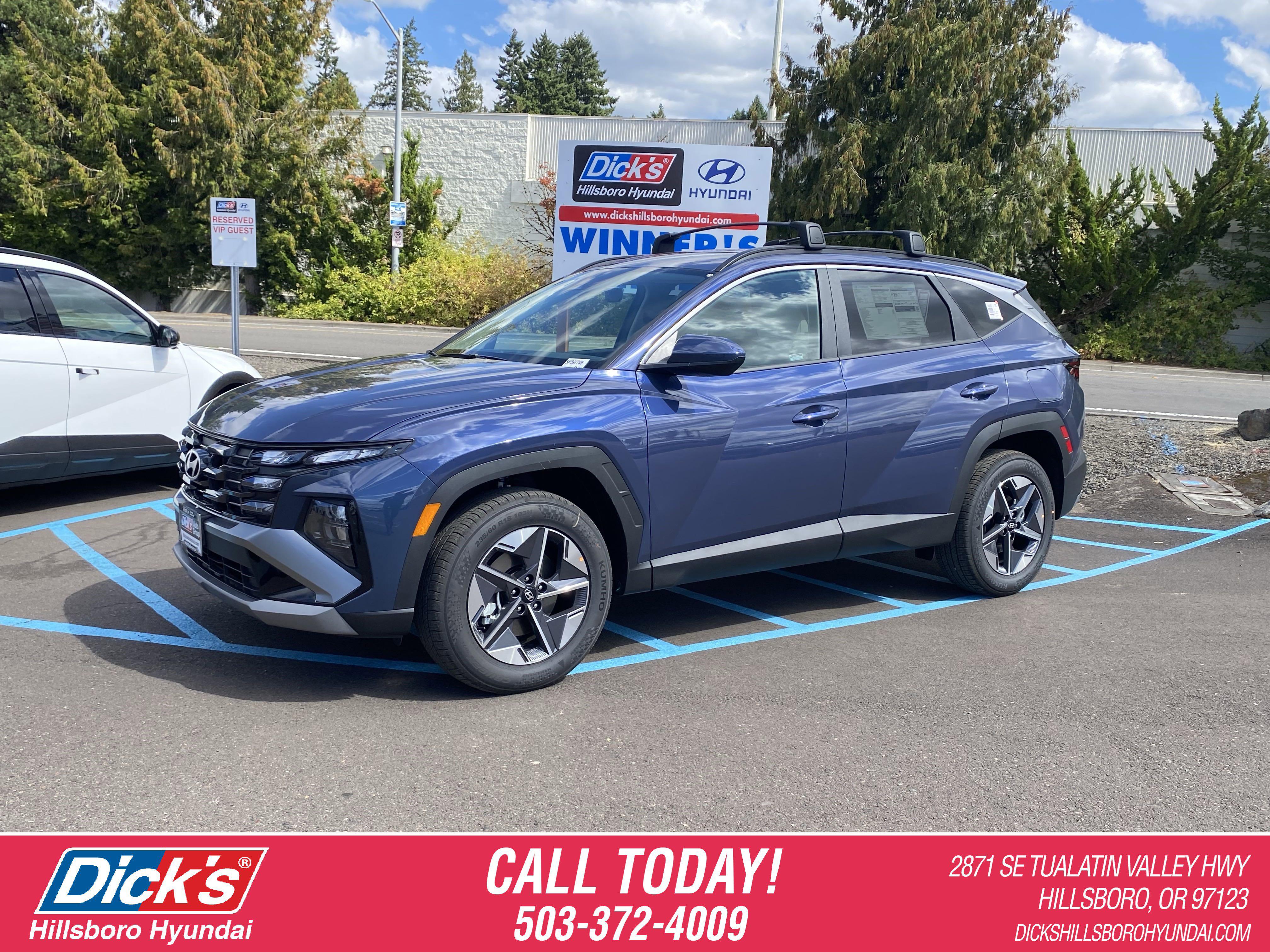 2025 Hyundai Tucson SEL Atlantis Blue AWD 2.5L I4 DGI DOHC 16V LEV3-SULEV30 187hp 8-Speed Automatic with SHIFTRONICAWD.24/30 City/Highway MPG Price includes:$3000 - Hyundai HMF Dealer Choice : Must finance through Hyundai Motor Finance at standard rates to qualify. See dealer for details. $44.09 per $1000 financed. Available to well qualified buyers who finance through Hyundai Motor Finance. H704. Exp. 12/01/2025