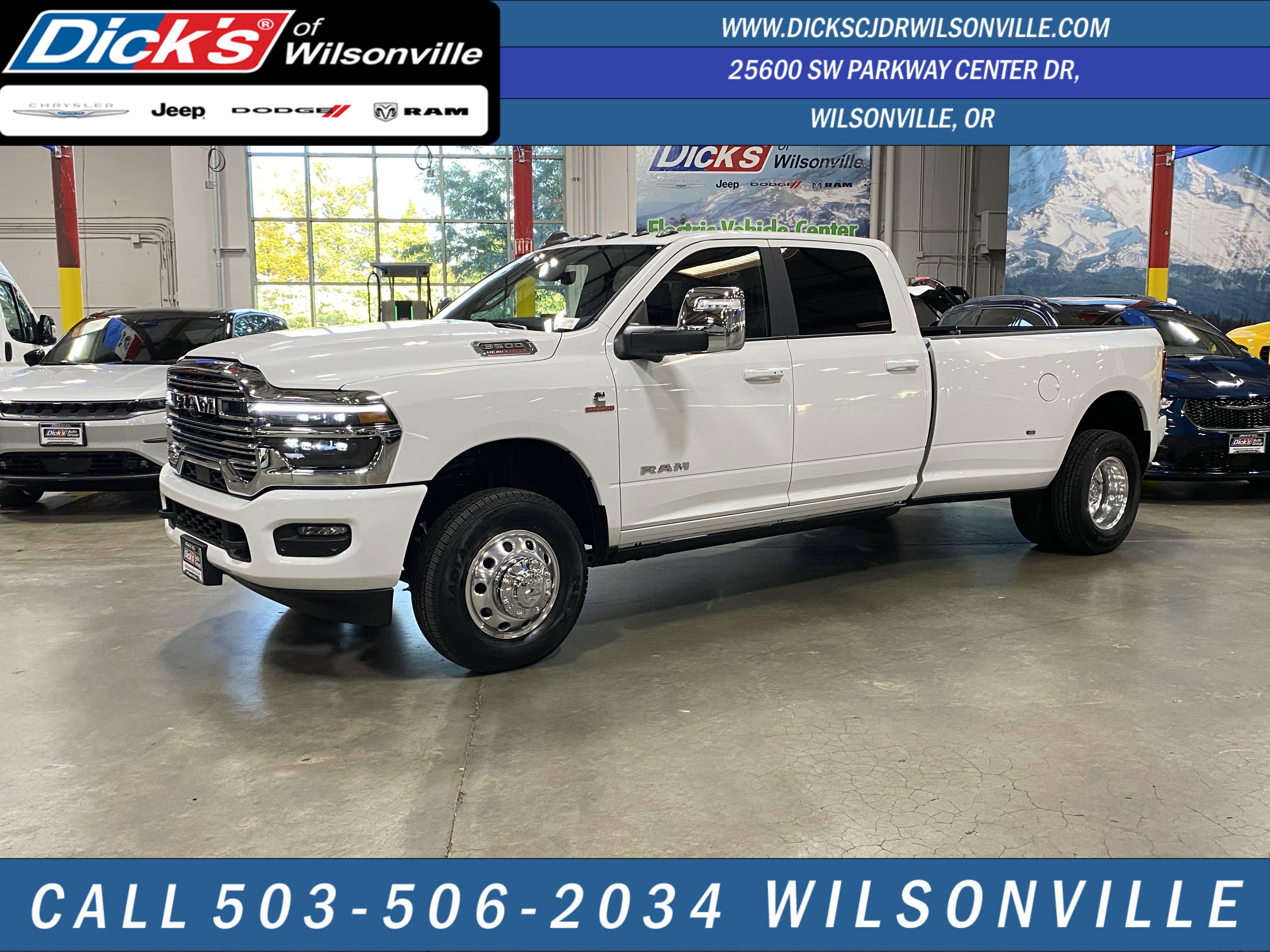 Bright White Clearcoat 4D Crew Cab 4WD 6.7L I6 8-Speed Automatic#1 Seat Foam Cushion, 10 Speakers, 115V Auxiliary Rear Power Outlet, 14.4 Touchscreen Display, 17 Speaker harman/kardon Premium Sound, 2 Way Rear Headrest Seat, 2nd Row In Floor Storage Bins, 3.42 Axle Ratio, 3.73 Axle Ratio, 4 Way Front Headrests, 4-Wheel Disc Brakes, 4G LTE Wi-Fi Hot Spot, 50 Gallon Fuel Tank, 5th Wheel/Gooseneck Towing Prep Group, 6000# Front Axle w/Hub Ext, ABS brakes, Active Lane Management System, Adaptive Steering System, Air Conditioning, Alexa Built-In, Alloy wheels, AM/FM radio: SiriusXM with 360L, Apple CarPlay, Apple CarPlay/Android Auto, Auto Adjust In Reverse Exterior Mirrors, Auto Dimming Exterior Passenger Mirror, Auto High Beam Headlamp Control, Auto Level Rear Air Suspension, Auto Power-Folding Mirrors, Auto-Dimming Exterior Mirrors, Auto-dimming Rear-View mirror, Automatic temperature control, Black Wheel Center Hub, Box & Rear Fender Clearance Lamps, Brake assist, Bucket Seats, Bumpers: body-color, Center Hub, Chrome Exterior Mirrors, Clearance Lamps, Compass, Connected Travel & Traffic Services, Connectivity - US/Canada, CTR Stop Lamp w/Cargo View Camera, Delay-off headlights, Disassociated Touchscreen Display, Driver door bin, Driver vanity mirror, Drowsy Driver Detection, Dual front impact airbags, Dual front side impact airbags, Dual Rear Wheels, Dual Wireless Charging Pad, Electronic Stability Control, Emergency Vehicle Alert System (EVAS), Engine Block Heater, Exterior Mirrors Courtesy Lamps, Exterior Mirrors w/Heating Element, Exterior Mirrors w/Memory, Exterior Mirrors w/Supplemental Signals, Foam Bottle Insert (Door Trim Panel), Folding Flat Load Floor Storage, For Details Visit DriveUconnect.com, For More Info, Call 800-643-2112, Forward & Reverse Utility Lights, Front anti-roll bar, Front Center Armrest w/Storage, Front dual zone A/C, Front fog lights, Front License Plate Bracket, Front reading lights, Front Seat Back Map Pockets, Full Length Upgraded Floor Console, Fully automatic headlights, Garage door transmitter, Global Telematics Box Module (TBM), Google Android Auto, GPS Antenna Input, GPS Navigation, HD Radio, Heated door mirrors, Heated Front Seats, Heated front seats, Heated Steering Wheel, Heated steering wheel, High Back Seats, Illuminated entry, Integrated Voice Command w/Bluetooth, Laramie Level 2 Plus Equipment Group, Leather Trim 40/20/40 Bench Seat, Leather Trimmed Bucket Seats, LED Bed Lighting, Low tire pressure warning, Manufacturer's Statement of Origin, Max Tow Package, Mirror Running Lights, MOPAR 30K Direct Mount 5th Wheel Hitch, MOPAR Deployable Bed Step, MOPAR Front & Rear Rubber Floor Mats, MOPAR Spray In Bedliner, Navigation System, Occupant sensing airbag, Off-Road Information Pages, Outside temperature display, Overhead airbag, Overhead console, Panic alarm, ParkView Rear Back-Up Camera, Passenger door bin, Passenger vanity mirror, Power 2-Way Driver Lumbar Adjust, Power 2-Way Passenger Lumbar Adjust, Power Adjust 8-Way Driver Seat, Power Adjust 8-Way Front Passenger Seat, Power Adjust Mirrors, Power Adjustable Pedals w/Memory, Power Deployable Running Boards, Power door mirrors, Power driver seat, Power Heat Fold Memory Telescopic Mirrors, Power passenger seat, Power steering, Power Sunroof, Power Telescoping Mirrors, Power windows, Power-Adjustable Convex Aux Mirrors, Quick Order Package 24H Laramie, Radio data system, Radio: Uconnect 5 Nav w/12.0 Display, Radio: Uconnect 5 Nav w/14.4 Display, Rain Sensitive Windshield Wipers, Rear 60/40 Folding Seat, Rear reading lights, Rear seat center armrest, Rear step bumper, Rear window defroster, Remote keyless entry, Remote Tailgate Release, Security system, Selectable Tire Fill Alert, SiriusXM Radio Service, SiriusXM w/360L, Speed control, Split folding rear seat, Steering wheel mounted audio controls, Surround View Camera System, Tachometer, Tilt steering wheel, Towin Price includes: $2000 - 2025 National Bonus Cash . Exp. 12/01/2