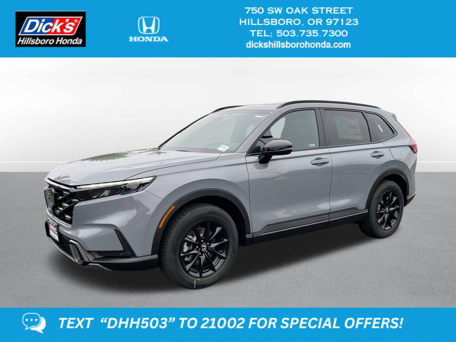 2026 Honda CR-V Hybrid Sport-L Urban Gray Pearl AWD eCVT 2.0L I4 DOHC 16V2.0L I4 DOHC 16V, 4-Wheel Disc Brakes, 8 Speakers, ABS brakes, Adaptive Cruise Control: Adaptive Cruise Control (ACC) with Low-Speed Follow, Air Conditioning, Alloy wheels, Apple CarPlay/Android Auto, Auto High-beam Headlights, Auto-dimming Rear-View mirror, Automatic temperature control, Blind Spot Information (BSI) System warning, Brake assist, Bumpers: body-color, Compass, Delay-off headlights, Driver door bin, Driver vanity mirror, Dual front impact airbags, Dual front side impact airbags, Electronic Stability Control, Exterior Parking Camera Rear, Four wheel independent suspension, Front anti-roll bar, Front Bucket Seats, Front Center Armrest, Front dual zone A/C, Front reading lights, Fully automatic headlights, Heated door mirrors, Heated Front Bucket Seats, Heated front seats, Illuminated entry, Knee airbag, Leather Seat Trim, Leather Shift Knob, Leather steering wheel, Low tire pressure warning, Memory seat, Occupant sensing airbag, Outside temperature display, Overhead airbag, Overhead console, Panic alarm, Passenger door bin, Passenger vanity mirror, Power door mirrors, Power driver seat, Power Liftgate, Power moonroof, Power passenger seat, Power steering, Power windows, Radio data system, Radio: 320-Watt AM/FM Audio System, Rear anti-roll bar, Rear reading lights, Rear seat center armrest, Rear side impact airbag, Rear window defroster, Rear window wiper, Remote keyless entry, Security system, Speed control, Speed-sensing steering, Speed-Sensitive Wipers, Split folding rear seat, Spoiler, Steering wheel mounted audio controls, Telescoping steering wheel, Tilt steering wheel, Traction control, Trip computer, Turn signal indicator mirrors, Variably intermittent wipers, Wheels: 18 Berlina Black, 2.0L I4 DOHC 16V.40/34 City/Highway MPG This 2026 Honda CR-V Hybrid Sport-L features a Urban Gray Pearl exterior with a Black interior. Factory equipped with an impressive 2.0 l, and an cvt w/od with awd.*DESIRABLE FEATURES:* Remote start, Backup camera, Moonroof, Heated seating, Leather, Bluetooth, WiFi capability, Power liftgate, Multi-zone AC. Your 2026 Honda CR-V Hybrid Sport-L is one of 11 other SUVs like this in stock Beaverton drivers will find available to test drive at our new SUV showroom in Hillsboro, OR. This Honda CR-V Hybrid is perfect for any ones SUV needs in our neighboring communities of Portland, Hillsboro & Beaverton, OR.*TECHNOLOGY FEATURES:* This Honda CR-V Hybrid for sale near Portland includes WiFi Mobile Hotspot, Remote Engine Start, Keyless Start, Bluetooth Connection, Smart Device Integration, Keyless Entry.*Our Honda Dealership:* Call Dicks Hillsboro Honda today at *503-735-7310 to schedule your test drive* of this 2026 Honda CR-V Hybrid Sport-L! Dicks Hillsboro Honda features a wide selection of new Honda SUVs for sale near Portland, Hillsboro & Beaverton Oregon. You can also visit us at, 750 SW Oak St. Hillsboro OR, 97123 to check it out in person!*MECHANICAL FEATURES:* Installed mechanical features include All Wheel Drive, Heated Mirrors, Push Button Start, Power One-touch down windows, Power Locks, Power Mirrors, Traction Control, Cruise Control, Ventilated Disc Brakes, Power Passenger Seat, Intermittent Wipers, Trip Computer, Tires - Front All-Season, Remote Trunk Release, Power Steering, Tires - Rear All-Season, Variable Speed Intermittent Wipers*INTERIOR OPTIONS:* Leather Seats, Dual Power Seats, Automatic Climate Control, Moon Roof, Heated Front Seats, Power Drivers Seat, Memory Seats, Adjustable Lumbar Seats, Leather Wrapped Steering Wheel, Air Conditioning, Pass-Through Rear Seat, Driver Illuminated Vanity Mirror, Bucket Front Seats, Steering Wheel Audio Controls, Auto Dimming R/V Mirror, Passenger Illuminated Visor Mirror, Multi-zone Climate Control, Auxiliary Audio Input, AM/FM Stereo, Floor Mats, Tilt Steering Wheel, Bench Seats, Rear Window Defroster, Vanity Mirrors, Trip Odometer. Beaverton new Honda SUV dealers simply cannot compete with Dicks Hillsboro Honda attention to stocking Honda SUVs with the most popular interior options.*EXTERIOR OPTIONS:* Aluminum Wheels, Power Hands-Free Liftgate, Privacy Glass, Auto Headlamp, Spoiler*SAFETY OPTIONS:* Lane Departure Warning, Lane Keeping Assist System, Rear Parking Aid, Cross Traffic Alerts, Back-Up Camera, Electronic Stability Control, Blind Spot Monitoring, LED Headlights, Cruise Control Steering Assist, Brake Assist, Front Collision Mitigation, Adaptive Cruise Control, Daytime Running Lights, Security System, Integrated Turn Signal Mirrors, Rear Collision Warning, Drivers Air Bag, Knee AirBag, Driver Alert System, Rear Air Bag, ABS Brakes, Tire Pressure Monitoring System, Child Proof Locks, Passenger Air Bag Sensor, Front Head Air Bag, Driver Front Side Impact Air BagOREGON'S BEST HONDA FINANCIAL CREDIT FINANCE RATES: are right here at Dicks Hillsboro Honda Hillsboro Dealership where we offer the most competitive Honda Financial finance rates near Portland for new & Certified Honda Financial Financing. Our brand Finance experts have solutions for everyone including bad credit car loans or first time buyer financing programs.Dicks Hillsboro Honda New Honda SUV dealership in Northwest Oregon is an easy drive or fly in from anywhere in the United States. Our Honda dealership sits just west of Beaverton.When choosing Honda dealers Portland shoppers prefer the short drive to Hillsboro where Dick's Hillsboro Honda has a new Honda Superstore and has the best customer service. We're glad you found this new Honda CR-V Hybrid for sale at our Honda dealership near you in Beaverton in Hillsboro, OR. Looking for Honda financing? Our Dicks Hillsboro Honda finance specialist will find the best rates available for this new Honda CR-V Hybrid for sale. Dicks Hillsboro Honda has new cars for sale and used cars for sale in Hillsboro just west of Portland.Dicks Hillsboro Honda New Honda SUV Super center sits just west of Beaverton. We stock and