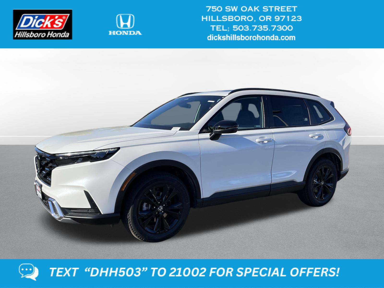 2026 Honda CR-V Hybrid Sport Touring Platinum White Pearl AWD eCVT 2.0L I4 DOHC 16V2.0L I4 DOHC 16V, 12 Speakers, 4-Wheel Disc Brakes, ABS brakes, Adaptive Cruise Control: Adaptive Cruise Control (ACC) with Low-Speed Follow, Air Conditioning, Alloy wheels, Apple CarPlay/Android Auto, Auto High-beam Headlights, Auto-dimming Rear-View mirror, Automatic temperature control, Blind Spot Information (BSI) System warning, Bose Premium Sound System, Brake assist, Bumpers: body-color, Compass, Delay-off headlights, Driver door bin, Driver vanity mirror, Dual front impact airbags, Dual front side impact airbags, Electronic Stability Control, Exterior Parking Camera Rear, Four wheel independent suspension, Front anti-roll bar, Front Bucket Seats, Front Center Armrest, Front dual zone A/C, Front reading lights, Fully automatic headlights, Heated door mirrors, Heated Front Bucket Seats, Heated front seats, Heated steering wheel, Illuminated entry, Knee airbag, Leather Seat Trim, Leather Shift Knob, Leather steering wheel, Low tire pressure warning, Memory seat, Navigation system: Google Maps, Occupant sensing airbag, Outside temperature display, Overhead airbag, Overhead console, Panic alarm, Passenger door bin, Passenger vanity mirror, Power door mirrors, Power driver seat, Power Liftgate, Power moonroof, Power passenger seat, Power steering, Power windows, Radio data system, Rain sensing wipers, Rear anti-roll bar, Rear reading lights, Rear seat center armrest, Rear side impact airbag, Rear window defroster, Rear window wiper, Remote keyless entry, Security system, Speed control, Speed-sensing steering, Speed-Sensitive Wipers, Split folding rear seat, Spoiler, Steering wheel mounted audio controls, Telescoping steering wheel, Tilt steering wheel, Traction control, Trip computer, Turn signal indicator mirrors, Variably intermittent wipers, Wheels: 19 Berlina Black, 2.0L I4 DOHC 16V.40/34 City/Highway MPG This 2026 Honda CR-V Hybrid Sport Touring features a Platinum White Pearl exterior with a Black interior. Factory equipped with an impressive 2.0 l, and an cvt w/od with awd.*DESIRABLE FEATURES:* Remote start, Navigation, Backup camera, Leather, WiFi capability, Heated seating, Moonroof, Bluetooth, Heated steering, Power liftgate, Premium audio, Multi-zone AC. Your 2026 Honda CR-V Hybrid Sport Touring is one of 18 other SUVs like this in stock Beaverton drivers will find available to test drive at our new SUV showroom in Hillsboro, OR. This Honda CR-V Hybrid is perfect for any ones SUV needs in our neighboring communities of Portland, Hillsboro & Beaverton, OR.*TECHNOLOGY FEATURES:* This Honda CR-V Hybrid for sale near Portland includes Remote Engine Start, Premium Sound System, WiFi Mobile Hotspot, Navigation System, Keyless Start, Smart Device Integration, Bluetooth Connection, HD Radio, Keyless Entry.*Our Honda Dealership:* Call Dicks Hillsboro Honda today at *503-735-7310 to schedule your test drive* of this 2026 Honda CR-V Hybrid Sport Touring! Dicks Hillsboro Honda features a wide selection of new Honda SUVs for sale near Portland, Hillsboro & Beaverton Oregon. You can also visit us at, 750 SW Oak St. Hillsboro OR, 97123 to check it out in person!*MECHANICAL FEATURES:* Installed mechanical features include Power One-touch down windows, Push Button Start, All Wheel Drive, Heated Mirrors, Power Mirrors, Power Locks, Traction Control, Cruise Control, Ventilated Disc Brakes, Power Passenger Seat, Intermittent Wipers, Power Steering, Variable Speed Intermittent Wipers, Tires - Front Performance, Tires - Rear Performance, Trip Computer, Remote Trunk Release*INTERIOR OPTIONS:* Heated Steering Wheel, Dual Power Seats, Automatic Climate Control, Heated Front Seats, Moon Roof, Leather Seats, Memory Seats, Power Drivers Seat, Leather Wrapped Steering Wheel, Adjustable Lumbar Seats, Air Conditioning, Driver Illuminated Vanity Mirror, Pass-Through Rear Seat, Steering Wheel Audio Controls, Bucket Front Seats, Auto Dimming R/V Mirror, Passenger Illuminated Visor Mirror, Multi-zone Climate Control, Tilt Steering Wheel, AM/FM Stereo, Bench Seats, Auxiliary Audio Input, Vanity Mirrors, Rear Window Defroster, Trip Odometer, Floor Mats. Beaverton new Honda SUV dealers simply cannot compete with Dicks Hillsboro Honda attention to stocking Honda SUVs with the most popular interior options.*EXTERIOR OPTIONS:* Aluminum Wheels, Power Hands-Free Liftgate, Privacy Glass, Auto Headlamp, Spoiler*SAFETY OPTIONS:* Back-Up Camera, Lane Keeping Assist System, Rain Sensing Wipers, Electronic Stability Control, Cross Traffic Alerts, Lane Departure Warning, Rear Parking Aid, Blind Spot Monitoring, Integrated Turn Signal Mirrors, Security System, Brake Assist, Rear Collision Warning, Front Collision Mitigation, Daytime Running Lights, Cruise Control Steering Assist, LED Headlights, Adaptive Cruise Control, Rear Air Bag, Tire Pressure Monitoring System, Drivers Air Bag, ABS Brakes, Knee AirBag, Driver Alert System, Passenger Air Bag Sensor, Child Proof Locks, Front Head Air Bag, Driver Front Side Impact Air BagOREGON'S BEST HONDA FINANCIAL CREDIT FINANCE RATES: are right here at Dicks Hillsboro Honda Hillsboro Dealership where we offer the most competitive Honda Financial finance rates near Portland for new & Certified Honda Financial Financing. Our brand Finance experts have solutions for everyone including bad credit car loans or first time buyer financing programs.Dicks Hillsboro Honda New Honda SUV dealership in Northwest Oregon is an easy drive or fly in from anywhere in the United States. Our Honda dealership sits just west of Beaverton.When choosing Honda dealers Portland shoppers prefer the short drive to Hillsboro where Dick's Hillsboro Honda has a new Honda Superstore and has the best customer service. We're glad you found this new Honda CR-V Hybrid for sale at our Honda dealership near you in Beaverton in Hillsboro, OR. Looking for Honda financing? Our Dicks Hillsboro Honda finance specialist will find the best rates av