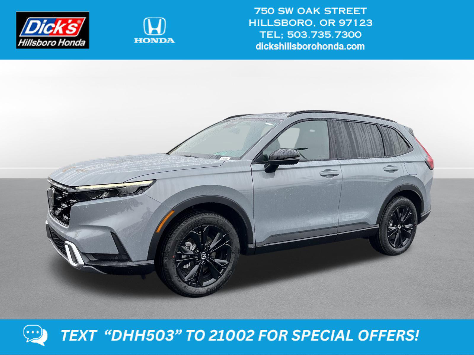 2026 Honda CR-V Hybrid Sport Touring Urban Gray Pearl AWD eCVT 2.0L I4 DOHC 16V2.0L I4 DOHC 16V, 12 Speakers, 4-Wheel Disc Brakes, ABS brakes, Adaptive Cruise Control: Adaptive Cruise Control (ACC) with Low-Speed Follow, Air Conditioning, Alloy wheels, Apple CarPlay/Android Auto, Auto High-beam Headlights, Auto-dimming Rear-View mirror, Automatic temperature control, Blind Spot Information (BSI) System warning, Bose Premium Sound System, Brake assist, Bumpers: body-color, Compass, Delay-off headlights, Driver door bin, Driver vanity mirror, Dual front impact airbags, Dual front side impact airbags, Electronic Stability Control, Exterior Parking Camera Rear, Four wheel independent suspension, Front anti-roll bar, Front Bucket Seats, Front Center Armrest, Front dual zone A/C, Front reading lights, Fully automatic headlights, Heated door mirrors, Heated Front Bucket Seats, Heated front seats, Heated steering wheel, Illuminated entry, Knee airbag, Leather Seat Trim, Leather Shift Knob, Leather steering wheel, Low tire pressure warning, Memory seat, Navigation system: Google Maps, Occupant sensing airbag, Outside temperature display, Overhead airbag, Overhead console, Panic alarm, Passenger door bin, Passenger vanity mirror, Power door mirrors, Power driver seat, Power Liftgate, Power moonroof, Power passenger seat, Power steering, Power windows, Radio data system, Rain sensing wipers, Rear anti-roll bar, Rear reading lights, Rear seat center armrest, Rear side impact airbag, Rear window defroster, Rear window wiper, Remote keyless entry, Security system, Speed control, Speed-sensing steering, Speed-Sensitive Wipers, Split folding rear seat, Spoiler, Steering wheel mounted audio controls, Telescoping steering wheel, Tilt steering wheel, Traction control, Trip computer, Turn signal indicator mirrors, Variably intermittent wipers, Wheels: 19 Berlina Black, 2.0L I4 DOHC 16V.Recent Arrival! 40/34 City/Highway MPG This 2026 Honda CR-V Hybrid Sport Touring features a Urban Gray Pearl exterior with a Black interior. Factory equipped with an impressive 2.0 l, and an cvt w/od with awd.*DESIRABLE FEATURES:* Navigation, Remote start, Backup camera, WiFi capability, Moonroof, Heated steering, Heated seating, Leather, Bluetooth, Power liftgate, Multi-zone AC, Premium audio. Your 2026 Honda CR-V Hybrid Sport Touring is one of 27 other SUVs like this in stock Beaverton drivers will find available to test drive at our new SUV showroom in Hillsboro, OR. This Honda CR-V Hybrid is perfect for any ones SUV needs in our neighboring communities of Portland, Hillsboro & Beaverton, OR.*TECHNOLOGY FEATURES:* This Honda CR-V Hybrid for sale near Portland includes Remote Engine Start, Navigation System, Premium Sound System, WiFi Mobile Hotspot, Keyless Start, Smart Device Integration, Bluetooth Connection, HD Radio, Keyless Entry.*Our Honda Dealership in Hillsboro:* Call Dicks Hillsboro Honda today at *503-735-7310 to schedule your test drive* of this 2026 Honda CR-V Hybrid Sport Touring! Dicks Hillsboro Honda features a wide selection of new Honda SUVs for sale near Portland, Hillsboro & Beaverton Oregon. You can also visit us at, 750 SW Oak St. Hillsboro OR, 97123 to check it out in person!*MECHANICAL FEATURES:* Installed mechanical features include Push Button Start, Power One-touch down windows, Heated Mirrors, All Wheel Drive, Traction Control, Power Mirrors, Power Locks, Power Passenger Seat, Ventilated Disc Brakes, Cruise Control, Intermittent Wipers, Tires - Front Performance, Remote Trunk Release, Tires - Rear Performance, Variable Speed Intermittent Wipers, Power Steering, Trip Computer*INTERIOR OPTIONS:* Heated Front Seats, Heated Steering Wheel, Automatic Climate Control, Dual Power Seats, Leather Seats, Moon Roof, Leather Wrapped Steering Wheel, Adjustable Lumbar Seats, Power Drivers Seat, Memory Seats, Driver Illuminated Vanity Mirror, Air Conditioning, Bucket Front Seats, Steering Wheel Audio Controls, Pass-Through Rear Seat, Auto Dimming R/V Mirror, Passenger Illuminated Visor Mirror, Multi-zone Climate Control, Auxiliary Audio Input, Trip Odometer, Vanity Mirrors, Bench Seats, Floor Mats, Tilt Steering Wheel, Rear Window Defroster, AM/FM Stereo. Beaverton new Honda SUV dealers simply cannot compete with Dicks Hillsboro Honda attention to stocking Honda SUVs with the most popular interior options.*EXTERIOR OPTIONS:* Aluminum Wheels, Power Hands-Free Liftgate, Privacy Glass, Auto Headlamp, Spoiler*SAFETY OPTIONS:* Cross Traffic Alerts, Back-Up Camera, Lane Departure Warning, Electronic Stability Control, Rear Parking Aid, Lane Keeping Assist System, Rain Sensing Wipers, Blind Spot Monitoring, Daytime Running Lights, Adaptive Cruise Control, Cruise Control Steering Assist, Integrated Turn Signal Mirrors, Rear Collision Warning, Brake Assist, LED Headlights, Front Collision Mitigation, Security System, Drivers Air Bag, ABS Brakes, Rear Air Bag, Driver Alert System, Tire Pressure Monitoring System, Knee AirBag, Front Head Air Bag, Driver Front Side Impact Air Bag, Child Proof Locks, Passenger Air Bag SensorOREGON'S BEST HONDA FINANCIAL CREDIT FINANCE RATES: are right here at Dicks Hillsboro Honda Hillsboro Dealership where we offer the most competitive Honda Financial finance rates near Portland for new & Certified Honda Financial Financing. Our brand Finance experts have solutions for everyone including bad credit car loans or first time buyer financing programs.Dicks Hillsboro Honda New Honda SUV dealership in Northwest Oregon is an easy drive or fly in from anywhere in the United States. Our Honda dealership sits just west of Beaverton.When choosing Honda dealers Portland shoppers prefer the short drive to Hillsboro where Dick's Hillsboro Honda has a new Honda Superstore and has the best customer service. We're glad you found this new Honda CR-V Hybrid for sale at our Honda dealership near you in Beaverton in Hillsboro, OR. Looking for Honda financing? Our Dicks Hillsboro Honda finance specialist will f
