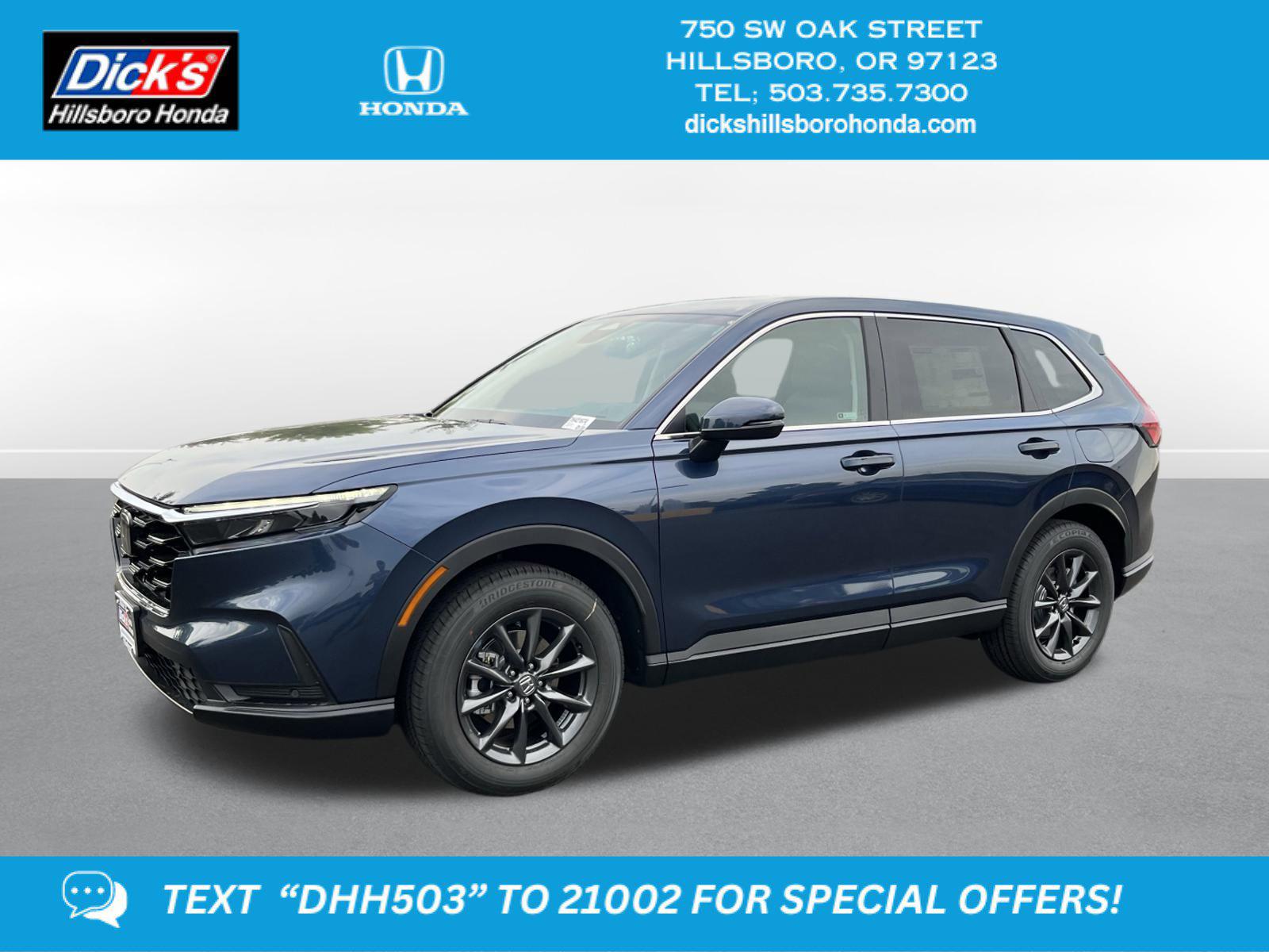 2026 Honda CR-V EX-L Canyon River Blue Metallic AWD CVT 1.5L I4 DOHC 16VAWD, 4-Wheel Disc Brakes, 8 Speakers, ABS brakes, Adaptive Cruise Control: Adaptive Cruise Control (ACC) with Low-Speed Follow, Air Conditioning, Alloy wheels, Apple CarPlay/Android Auto, Auto High-beam Headlights, Auto-dimming Rear-View mirror, Automatic temperature control, Blind Spot Information (BSI) System warning, Brake assist, Bumpers: body-color, Compass, Delay-off headlights, Driver door bin, Driver vanity mirror, Dual front impact airbags, Dual front side impact airbags, Electronic Stability Control, Exterior Parking Camera Rear, Four wheel independent suspension, Front anti-roll bar, Front Bucket Seats, Front Center Armrest, Front dual zone A/C, Front reading lights, Fully automatic headlights, Heated door mirrors, Heated Front Bucket Seats, Heated front seats, Illuminated entry, Knee airbag, Leather Seat Trim, Leather Shift Knob, Leather steering wheel, Low tire pressure warning, Memory seat, Occupant sensing airbag, Outside temperature display, Overhead airbag, Overhead console, Panic alarm, Passenger door bin, Passenger vanity mirror, Power door mirrors, Power driver seat, Power Liftgate, Power moonroof, Power passenger seat, Power steering, Power windows, Radio data system, Radio: 320-Watt AM/FM Audio System, Rear anti-roll bar, Rear reading lights, Rear seat center armrest, Rear side impact airbag, Rear window defroster, Rear window wiper, Remote keyless entry, Security system, Speed control, Speed-sensing steering, Speed-Sensitive Wipers, Split folding rear seat, Spoiler, Steering wheel mounted audio controls, Tachometer, Telescoping steering wheel, Tilt steering wheel, Traction control, Trip computer, Turn signal indicator mirrors, Variably intermittent wipers, Wheels: 18 Shark Gray, AWD.27/31 City/Highway MPG This 2026 Honda CR-V EX-L features a Canyon River Blue Metallic exterior with a Black interior. Factory equipped with an impressive 1.5 l, and an cvt w/od with awd.*DESIRABLE FEATURES:* Remote start, Backup camera, Turbocharged, Heated seating, Leather, Bluetooth, Moonroof, Power liftgate, Multi-zone AC. Your 2026 Honda CR-V EX-L is one of 17 other SUVs like this in stock Beaverton drivers will find available to test drive at our new SUV showroom in Hillsboro, OR. This Honda CR-V is perfect for any ones SUV needs in our neighboring communities of Portland, Hillsboro & Beaverton, OR.*TECHNOLOGY FEATURES:* This Honda CR-V for sale near Portland includes Remote Engine Start, Keyless Start, Bluetooth Connection, Smart Device Integration, Keyless Entry.*Our Honda Dealership in Hillsboro:* Call Dicks Hillsboro Honda today at *503-735-7310 to schedule your test drive* of this 2026 Honda CR-V EX-L! Dicks Hillsboro Honda features a wide selection of new Honda SUVs for sale near Portland, Hillsboro & Beaverton Oregon. You can also visit us at, 750 SW Oak St. Hillsboro OR, 97123 to check it out in person!*MECHANICAL FEATURES:* Installed mechanical features include All Wheel Drive, Turbocharged Engine, Heated Mirrors, Power One-touch down windows, Push Button Start, Power Mirrors, Traction Control, Power Locks, Power Passenger Seat, Ventilated Disc Brakes, Cruise Control, Intermittent Wipers, Remote Trunk Release, Tires - Front All-Season, Trip Computer, Variable Speed Intermittent Wipers, Power Steering, Tires - Rear All-Season*INTERIOR OPTIONS:* Moon Roof, Dual Power Seats, Leather Seats, Heated Front Seats, Automatic Climate Control, Memory Seats, Leather Wrapped Steering Wheel, Power Drivers Seat, Adjustable Lumbar Seats, Bucket Front Seats, Air Conditioning, Steering Wheel Audio Controls, Pass-Through Rear Seat, Driver Illuminated Vanity Mirror, Multi-zone Climate Control, Passenger Illuminated Visor Mirror, Auto Dimming R/V Mirror, Tilt Steering Wheel, Floor Mats, Rear Window Defroster, Bench Seats, Vanity Mirrors, Trip Odometer, AM/FM Stereo, Auxiliary Audio Input. Beaverton new Honda SUV dealers simply cannot compete with Dicks Hillsboro Honda attention to stocking Honda SUVs with the most popular interior options.*EXTERIOR OPTIONS:* Aluminum Wheels, Power Hands-Free Liftgate, Privacy Glass, Auto Headlamp, Spare Tire *Small Size*, Spoiler*SAFETY OPTIONS:* Electronic Stability Control, Lane Keeping Assist System, Rear Parking Aid, Blind Spot Monitoring, Lane Departure Warning, Back-Up Camera, Cross Traffic Alerts, Rear Collision Warning, Security System, Front Collision Mitigation, LED Headlights, Cruise Control Steering Assist, Adaptive Cruise Control, Integrated Turn Signal Mirrors, Daytime Running Lights, Brake Assist, Drivers Air Bag, Tire Pressure Monitoring System, Rear Air Bag, Driver Alert System, Knee AirBag, ABS Brakes, Child Proof Locks, Driver Front Side Impact Air Bag, Front Head Air Bag, Passenger Air Bag SensorOREGON'S BEST HONDA FINANCIAL CREDIT FINANCE RATES: are right here at Dicks Hillsboro Honda Hillsboro Dealership where we offer the most competitive Honda Financial finance rates near Portland for new & Certified Honda Financial Financing. Our brand Finance experts have solutions for everyone including bad credit car loans or first time buyer financing programs.Dicks Hillsboro Honda New Honda SUV dealership in Northwest Oregon is an easy drive or fly in from anywhere in the United States. Our Honda dealership sits just west of Beaverton.When choosing Honda dealers Portland shoppers prefer the short drive to Hillsboro where Dick's Hillsboro Honda has a new Honda Superstore and has the best customer service. We're glad you found this new Honda CR-V for sale at our Honda dealership near you in Beaverton in Hillsboro, OR. Looking for Honda financing? Our Dicks Hillsboro Honda finance specialist will find the best rates available for this new Honda CR-V for sale. Dicks Hillsboro Honda has new cars for sale and used cars for sale in Hillsboro just west of Portland.Dicks Hillsboro Honda New Honda SUV Super center sits just west of Beaverton. We stock and special order the new Honda SU