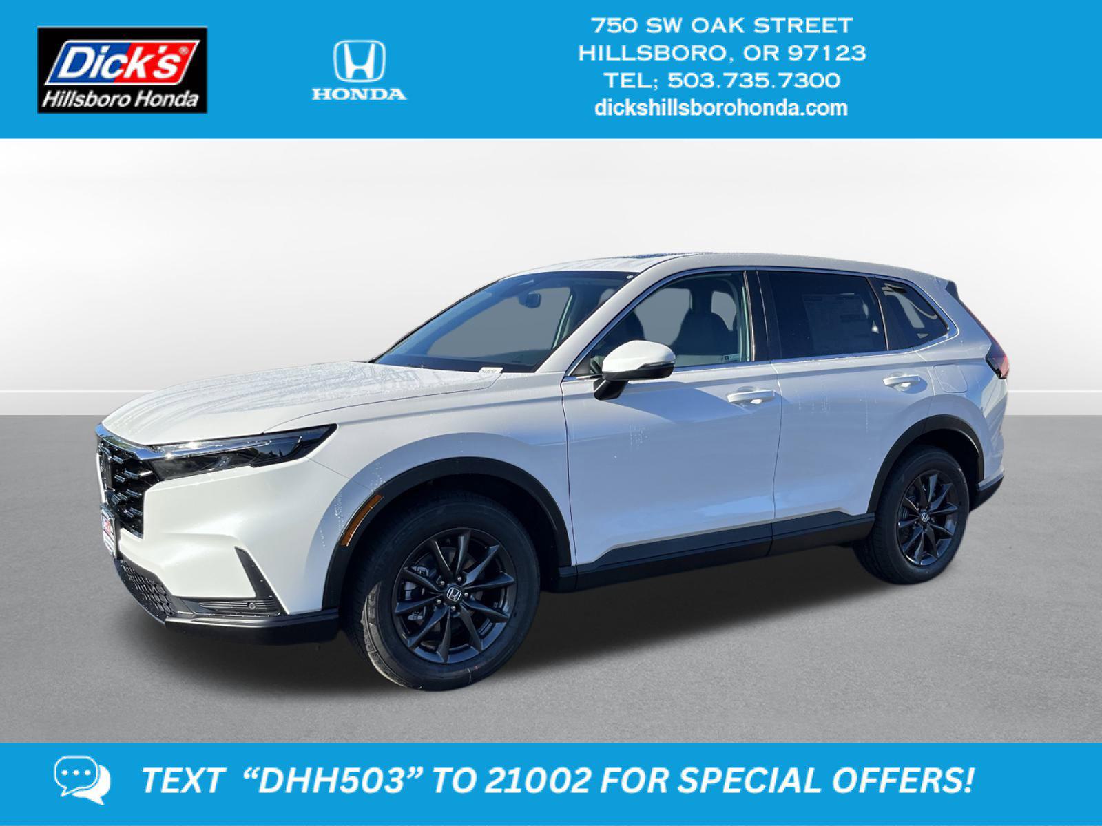 2026 Honda CR-V EX-L Platinum White Pearl AWD CVT 1.5L I4 DOHC 16VAWD, 4-Wheel Disc Brakes, 8 Speakers, ABS brakes, Adaptive Cruise Control: Adaptive Cruise Control (ACC) with Low-Speed Follow, Air Conditioning, Alloy wheels, Apple CarPlay/Android Auto, Auto High-beam Headlights, Auto-dimming Rear-View mirror, Automatic temperature control, Blind Spot Information (BSI) System warning, Brake assist, Bumpers: body-color, Compass, Delay-off headlights, Driver door bin, Driver vanity mirror, Dual front impact airbags, Dual front side impact airbags, Electronic Stability Control, Exterior Parking Camera Rear, Four wheel independent suspension, Front anti-roll bar, Front Bucket Seats, Front Center Armrest, Front dual zone A/C, Front reading lights, Fully automatic headlights, Heated door mirrors, Heated Front Bucket Seats, Heated front seats, Illuminated entry, Knee airbag, Leather Seat Trim, Leather Shift Knob, Leather steering wheel, Low tire pressure warning, Memory seat, Occupant sensing airbag, Outside temperature display, Overhead airbag, Overhead console, Panic alarm, Passenger door bin, Passenger vanity mirror, Power door mirrors, Power driver seat, Power Liftgate, Power moonroof, Power passenger seat, Power steering, Power windows, Radio data system, Radio: 320-Watt AM/FM Audio System, Rear anti-roll bar, Rear reading lights, Rear seat center armrest, Rear side impact airbag, Rear window defroster, Rear window wiper, Remote keyless entry, Security system, Speed control, Speed-sensing steering, Speed-Sensitive Wipers, Split folding rear seat, Spoiler, Steering wheel mounted audio controls, Tachometer, Telescoping steering wheel, Tilt steering wheel, Traction control, Trip computer, Turn signal indicator mirrors, Variably intermittent wipers, Wheels: 18 Shark Gray, AWD.27/31 City/Highway MPG This 2026 Honda CR-V EX-L features a Platinum White Pearl exterior with a Black interior. Factory equipped with an impressive 1.5 l, and an cvt w/od with awd.*DESIRABLE FEATURES:* Remote start, Backup camera, Turbocharged, Heated seating, Leather, Moonroof, Bluetooth, Power liftgate, Multi-zone AC. Your 2026 Honda CR-V EX-L is one of 13 other SUVs like this in stock Beaverton drivers will find available to test drive at our new SUV showroom in Hillsboro, OR. This Honda CR-V is perfect for any ones SUV needs in our neighboring communities of Portland, Hillsboro & Beaverton, OR.*TECHNOLOGY FEATURES:* This Honda CR-V for sale near Portland includes Remote Engine Start, Keyless Start, Smart Device Integration, Bluetooth Connection, Keyless Entry.*Our Honda Dealership in Hillsboro:* Call Dicks Hillsboro Honda today at *503-735-7310 to schedule your test drive* of this 2026 Honda CR-V EX-L! Dicks Hillsboro Honda features a wide selection of new Honda SUVs for sale near Portland, Hillsboro & Beaverton Oregon. You can also visit us at, 750 SW Oak St. Hillsboro OR, 97123 to check it out in person!*MECHANICAL FEATURES:* Installed mechanical features include Heated Mirrors, All Wheel Drive, Push Button Start, Power One-touch down windows, Turbocharged Engine, Traction Control, Power Locks, Power Mirrors, Cruise Control, Ventilated Disc Brakes, Power Passenger Seat, Intermittent Wipers, Tires - Front All-Season, Variable Speed Intermittent Wipers, Power Steering, Remote Trunk Release, Trip Computer, Tires - Rear All-Season*INTERIOR OPTIONS:* Dual Power Seats, Automatic Climate Control, Moon Roof, Leather Seats, Heated Front Seats, Adjustable Lumbar Seats, Power Drivers Seat, Leather Wrapped Steering Wheel, Memory Seats, Pass-Through Rear Seat, Air Conditioning, Driver Illuminated Vanity Mirror, Steering Wheel Audio Controls, Bucket Front Seats, Multi-zone Climate Control, Auto Dimming R/V Mirror, Passenger Illuminated Visor Mirror, Bench Seats, Floor Mats, Trip Odometer, Rear Window Defroster, Auxiliary Audio Input, Tilt Steering Wheel, Vanity Mirrors, AM/FM Stereo. Beaverton new Honda SUV dealers simply cannot compete with Dicks Hillsboro Honda attention to stocking Honda SUVs with the most popular interior options.*EXTERIOR OPTIONS:* Aluminum Wheels, Power Hands-Free Liftgate, Privacy Glass, Auto Headlamp, Spoiler, Spare Tire *Small Size**SAFETY OPTIONS:* Rear Parking Aid, Lane Departure Warning, Blind Spot Monitoring, Lane Keeping Assist System, Cross Traffic Alerts, Back-Up Camera, Electronic Stability Control, Brake Assist, Security System, Daytime Running Lights, Adaptive Cruise Control, Rear Collision Warning, Front Collision Mitigation, LED Headlights, Cruise Control Steering Assist, Integrated Turn Signal Mirrors, ABS Brakes, Drivers Air Bag, Knee AirBag, Rear Air Bag, Tire Pressure Monitoring System, Driver Alert System, Passenger Air Bag Sensor, Driver Front Side Impact Air Bag, Front Head Air Bag, Child Proof LocksOREGON'S BEST HONDA FINANCIAL CREDIT FINANCE RATES: are right here at Dicks Hillsboro Honda Hillsboro Dealership where we offer the most competitive Honda Financial finance rates near Portland for new & Certified Honda Financial Financing. Our brand Finance experts have solutions for everyone including bad credit car loans or first time buyer financing programs.Dicks Hillsboro Honda New Honda SUV dealership in Northwest Oregon is an easy drive or fly in from anywhere in the United States. Our Honda dealership sits just west of Beaverton.When choosing Honda dealers Portland shoppers prefer the short drive to Hillsboro where Dick's Hillsboro Honda has a new Honda Superstore and has the best customer service. We're glad you found this new Honda CR-V for sale at our Honda dealership near you in Beaverton in Hillsboro, OR. Looking for Honda financing? Our Dicks Hillsboro Honda finance specialist will find the best rates available for this new Honda CR-V for sale. Dicks Hillsboro Honda has new cars for sale and used cars for sale in Hillsboro just west of Portland.Dicks Hillsboro Honda New Honda SUV Super center sits just west of Beaverton. We stock and special order the new Honda SUV models Por