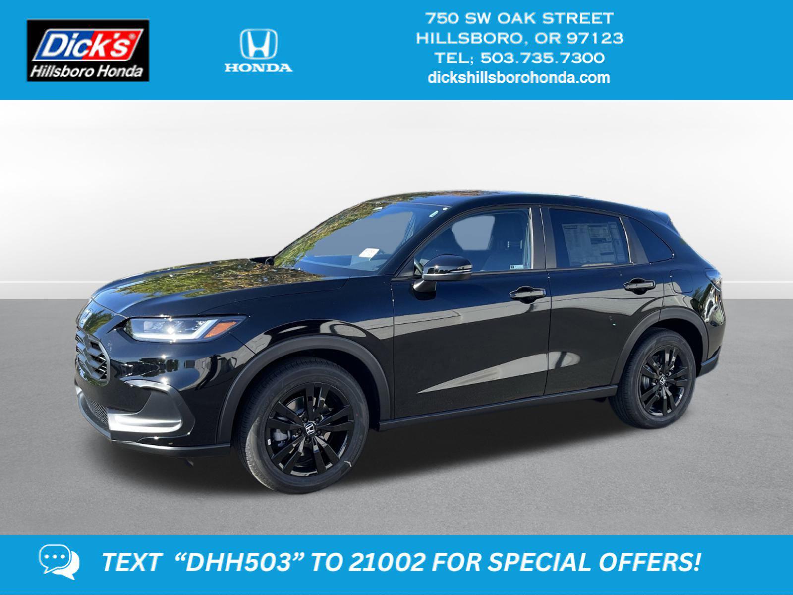 2026 Honda HR-V Sport Crystal Black Pearl AWD CVT 2.0L I4 DOHC 16V i-VTEC4-Wheel Disc Brakes, 6 Speakers, ABS brakes, Adaptive Cruise Control: Adaptive Cruise Control (ACC) with Low-Speed Follow, Air Conditioning, Alloy wheels, AM/FM radio, Apple CarPlay/Android Auto, Auto High-beam Headlights, Automatic temperature control, Blind Spot Information (BSI) System warning, Brake assist, Bumpers: body-color, Cloth Seat Trim, Compass, Delay-off headlights, Driver door bin, Driver vanity mirror, Dual front impact airbags, Dual front side impact airbags, Electronic Stability Control, Exterior Parking Camera Rear, Four wheel independent suspension, Front anti-roll bar, Front Bucket Seats, Front Center Armrest, Front reading lights, Fully automatic headlights, Heated door mirrors, Heated Front Bucket Seats, Heated front seats, Illuminated entry, Knee airbag, Low tire pressure warning, Occupant sensing airbag, Outside temperature display, Overhead airbag, Panic alarm, Passenger door bin, Passenger vanity mirror, Power door mirrors, Power steering, Power windows, Radio data system, Radio: 180-Watt Audio System w/6 Speakers, Rear anti-roll bar, Rear reading lights, Rear side impact airbag, Rear window defroster, Rear window wiper, Remote keyless entry, Security system, Speed control, Speed-sensing steering, Split folding rear seat, Spoiler, Steering wheel mounted audio controls, Tachometer, Telescoping steering wheel, Tilt steering wheel, Traction control, Trip computer, Turn signal indicator mirrors, Variably intermittent wipers, Wheels: 18 Gloss Black Alloy.25/30 City/Highway MPG This 2026 Honda HR-V Sport features a Crystal Black Pearl exterior with a Black interior. Factory equipped with an impressive 2.0 l, and an cvt w/od with awd.*DESIRABLE FEATURES:* Remote start, Backup camera, Heated seating, Bluetooth. Your 2026 Honda HR-V Sport is one of 11 other SUVs like this in stock Beaverton drivers will find available to test drive at our new SUV showroom in Hillsboro, OR. This Honda HR-V is perfect for any ones SUV needs in our neighboring communities of Portland, Hillsboro & Beaverton, OR.*TECHNOLOGY FEATURES:* This Honda HR-V for sale near Portland includes Remote Engine Start, Keyless Start, Smart Device Integration, Bluetooth Connection, Keyless Entry.*Our Honda Dealership in Hillsboro:* Call Dicks Hillsboro Honda today at *503-735-7310 to schedule your test drive* of this 2026 Honda HR-V Sport! Dicks Hillsboro Honda features a wide selection of new Honda SUVs for sale near Portland, Hillsboro & Beaverton Oregon. You can also visit us at, 750 SW Oak St. Hillsboro OR, 97123 to check it out in person!*MECHANICAL FEATURES:* Installed mechanical features include Push Button Start, Power One-touch down windows, Heated Mirrors, All Wheel Drive, Power Locks, Traction Control, Power Mirrors, Locking Rear Differential, Cruise Control, Ventilated Disc Brakes, Intermittent Wipers, Trip Computer, Tires - Front Performance, Tires - Rear Performance, Power Steering, Variable Speed Intermittent Wipers*INTERIOR OPTIONS:* Heated Front Seats, Automatic Climate Control, Cloth Seats, Bucket Front Seats, Driver Illuminated Vanity Mirror, Steering Wheel Audio Controls, Air Conditioning, Pass-Through Rear Seat, Passenger Illuminated Visor Mirror, Floor Mats, Bench Seats, Trip Odometer, Auxiliary Audio Input, Rear Window Defroster, Tilt Steering Wheel, AM/FM Stereo, Vanity Mirrors. Beaverton new Honda SUV dealers simply cannot compete with Dicks Hillsboro Honda attention to stocking Honda SUVs with the most popular interior options.*EXTERIOR OPTIONS:* Aluminum Wheels, Privacy Glass, Auto Headlamp, Spare Tire *Small Size*, Spoiler*SAFETY OPTIONS:* Lane Departure Warning, Electronic Stability Control, Back-Up Camera, Blind Spot Monitoring, Lane Keeping Assist System, Cross Traffic Alerts, Security System, Adaptive Cruise Control, Cruise Control Steering Assist, Front Collision Mitigation, LED Headlights, Integrated Turn Signal Mirrors, Brake Assist, Daytime Running Lights, Rear Air Bag, Drivers Air Bag, ABS Brakes, Tire Pressure Monitoring System, Driver Alert System, Knee AirBag, Driver Front Side Impact Air Bag, Child Proof Locks, Passenger Air Bag Sensor, Front Head Air BagOREGON'S BEST HONDA FINANCIAL CREDIT FINANCE RATES: are right here at Dicks Hillsboro Honda Hillsboro Dealership where we offer the most competitive Honda Financial finance rates near Portland for new & Certified Honda Financial Financing. Our brand Finance experts have solutions for everyone including bad credit car loans or first time buyer financing programs.Dicks Hillsboro Honda New Honda SUV dealership in Northwest Oregon is an easy drive or fly in from anywhere in the United States. Our Honda dealership sits just west of Beaverton.When choosing Honda dealers Portland shoppers prefer the short drive to Hillsboro where Dick's Hillsboro Honda has a new Honda Superstore and has the best customer service. We're glad you found this new Honda HR-V for sale at our Honda dealership near you in Beaverton in Hillsboro, OR. Looking for Honda financing? Our Dicks Hillsboro Honda finance specialist will find the best rates available for this new Honda HR-V for sale. Dicks Hillsboro Honda has new cars for sale and used cars for sale in Hillsboro just west of Portland.Dicks Hillsboro Honda New Honda SUV Super center sits just west of Beaverton. We stock and special order the new Honda SUV models Portland, Hillsboro & Beaverton OR SUV shoppers prefer, like this 2026 Honda HR-V Sport Stock# TM727659.