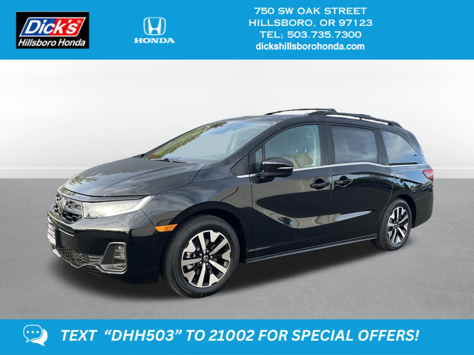 2026 Honda Odyssey EX-L Crystal Black Pearl FWD 10-Speed Automatic 3.5L V6 SOHC i-VTEC 24V18 Machine-Finished Alloy Wheels, 3rd row seats: split-bench, 4-Wheel Disc Brakes, 7 Speakers, ABS brakes, Adaptive Cruise Control: Adaptive Cruise Control (ACC) with Low-Speed Follow, Air Conditioning, Alloy wheels, AM/FM radio: SiriusXM, Anti-whiplash front head restraints, Apple CarPlay/Android Auto, Auto High-beam Headlights, Auto-dimming Rear-View mirror, Automatic temperature control, Blind Spot Information (BSI) System warning, Brake assist, Bumpers: body-color, Delay-off headlights, Driver door bin, Driver vanity mirror, Driver's Seat Mounted Armrest, Dual front impact airbags, Dual front side impact airbags, Electronic Stability Control, Exterior Parking Camera Rear, Four wheel independent suspension, Front anti-roll bar, Front Bucket Seats, Front dual zone A/C, Front fog lights, Front reading lights, Fully automatic headlights, Garage door transmitter: HomeLink, Heated door mirrors, Heated Front Bucket Seats, Heated front seats, Illuminated entry, Knee airbag, Lane departure: Lane Keeping Assist System (LKAS) active, Leather steering wheel, Leather-Trimmed Seats, Low tire pressure warning, Memory seat, Occupant sensing airbag, Outside temperature display, Overhead airbag, Overhead console, Panic alarm, Passenger door bin, Passenger seat mounted armrest, Passenger vanity mirror, Power door mirrors, Power driver seat, Power Liftgate, Power moonroof, Power passenger seat, Power steering, Power windows, Radio data system, Radio: 160-Watt AM/FM/HD/SiriusXM Audio System, Rear air conditioning, Rear anti-roll bar, Rear reading lights, Rear seat center armrest, Rear window defroster, Rear window wiper, Reclining 3rd row seat, Remote keyless entry, Security system, Speed control, Speed-sensing steering, Speed-Sensitive Wipers, Split folding rear seat, Spoiler, Steering wheel mounted audio controls, Tachometer, Telescoping steering wheel, Tilt steering wheel, Traction control, Trip computer, Turn signal indicator mirrors, Variably intermittent wipers.19/28 City/Highway MPGThis 2026 Honda Odyssey EX-L features a Crystal Black Pearl exterior with a Black interior. Factory equipped with an impressive 3.5 l, and a 10-speed automatic w/od transmission with fwd.*DESIRABLE FEATURES:* Remote start, Backup camera, Heated seating, Leather, Moonroof, Bluetooth, Power liftgate, 3rd row seat, Power sliding doors, Multi-zone AC. Your 2026 Honda Odyssey EX-L is one of 6 other models like this in stock Beaverton drivers will find available to test drive at our new vehicle showroom in Hillsboro, OR. This Honda Odyssey is perfect for any ones car needs in our neighboring communities of Portland, Hillsboro & Beaverton, OR.*TECHNOLOGY FEATURES:* This Honda Odyssey for sale near Portland includes Remote Engine Start, Keyless Start, Digital Media Storage, Garage Door Opener, Smart Device Integration, SiriusXM Satellite Radio, Bluetooth Connection, HD Radio, Keyless Entry.*Our Honda Dealership:* Call Dicks Hillsboro Honda today at *503-735-7310 to schedule your test drive* of this 2026 Honda Odyssey EX-L! Dicks Hillsboro Honda features a wide selection of new Honda vehicles for sale near Portland, Hillsboro & Beaverton Oregon. You can also visit us at, 750 SW Oak St. Hillsboro OR, 97123 to check it out in person!*MECHANICAL FEATURES:* Installed mechanical features include Heated Mirrors, Push Button Start, Power One-touch down windows, Power Mirrors, Traction Control, Power Locks, Front Wheel Drive, Ventilated Disc Brakes, Locking Rear Differential, Power Sliding Rear Passenger Door, Sliding Rear Passenger Door, Power Sliding Rear Drivers Door, Power Passenger Seat, Cruise Control, Sliding Rear Drivers Door, Intermittent Wipers, Trip Computer, Remote Trunk Release, Tires - Front All-Season, Variable Speed Intermittent Wipers, Power Steering, Tires - Rear All-Season*INTERIOR OPTIONS:* Dual Power Seats, Third Row Seats, Moon Roof, Automatic Climate Control, Leather Seats, Heated Front Seats, Memory Seats, Leather Wrapped Steering Wheel, Adjustable Lumbar Seats, Power Drivers Seat, Pass-Through Rear Seat, Air Conditioning, Bucket Front Seats, Memory Mirrors, Steering Wheel Audio Controls, Driver Illuminated Vanity Mirror, Auto Dimming R/V Mirror, Passenger Illuminated Visor Mirror, Multi-zone Climate Control, Floor Mats, Vanity Mirrors, Rear Window Defroster, Bench Seats, Trip Odometer, AM/FM Stereo, Auxiliary Audio Input, Tilt Steering Wheel. Beaverton new Honda dealers simply cannot compete with Dicks Hillsboro Honda attention to stocking Honda cars, trucks & SUVs with the most popular interior options.*EXTERIOR OPTIONS:* Aluminum Wheels, Fog Lights, Power Hands-Free Liftgate, Privacy Glass, Auto Headlamp, Spare Tire *Small Size*, Spoiler*SAFETY OPTIONS:* Lane Departure Warning, Electronic Stability Control, Back-Up Camera, Cross Traffic Alerts, Lane Keeping Assist System, Blind Spot Monitoring, Daytime Running Lights, LED Headlights, Front Collision Mitigation, Brake Assist, Adaptive Cruise Control, Integrated Turn Signal Mirrors, Security System, ABS Brakes, Knee AirBag, Tire Pressure Monitoring System, Drivers Air Bag, Rear Air Bag, Driver Front Side Impact Air Bag, Passenger Air Bag Sensor, Front Head Air Bag, Child Proof LocksOREGON'S BEST HONDA FINANCIAL CREDIT FINANCE RATES: are right here at Dicks Hillsboro Honda Hillsboro Dealership where we offer the most competitive Honda Financial finance rates near Portland for new & Certified Honda Financial Financing. Our brand Finance experts have solutions for everyone including bad credit car loans or first time buyer financing programs.Dicks Hillsboro Honda New Honda dealership in Northwest Oregon is an easy drive or fly in from anywhere in the United States. Our Honda dealership sits just west of Beaverton.When choosing Honda dealers Portland shoppers prefer the short drive to Hillsboro where Dick's Hillsboro Honda has a new Honda Superstore and has the best customer se