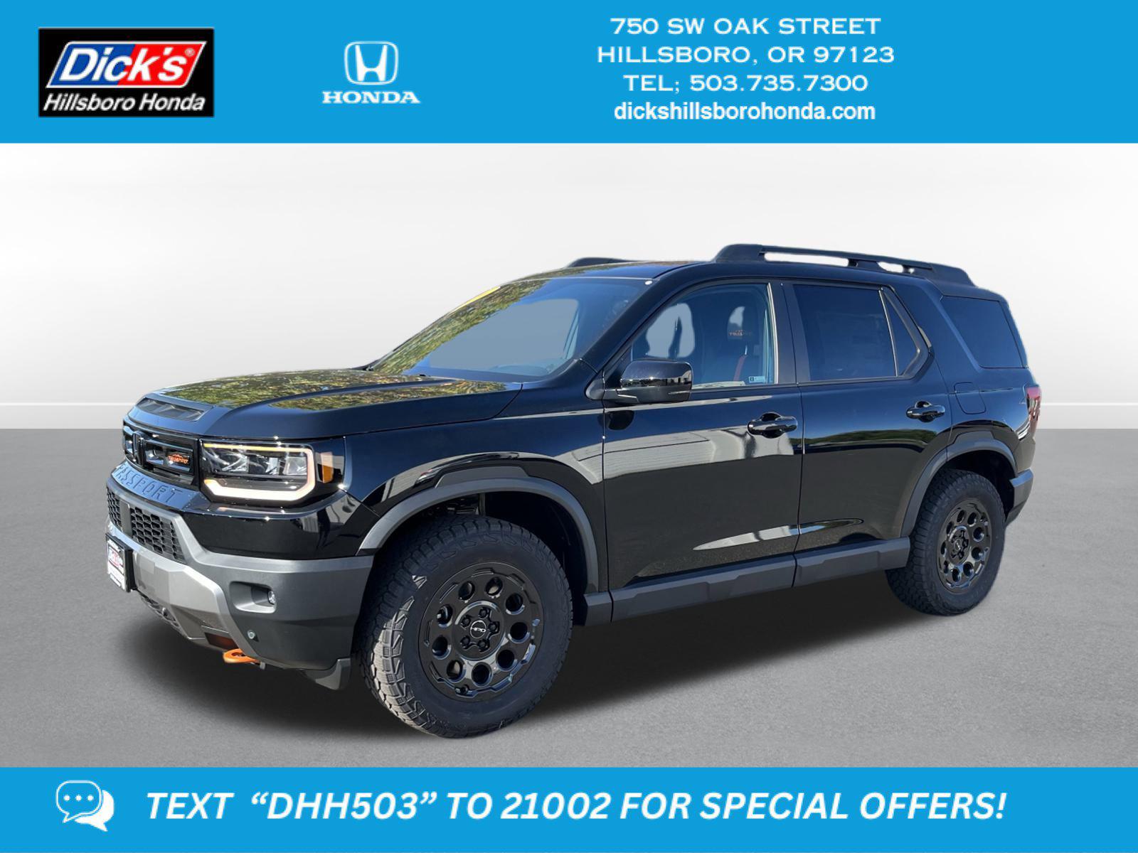 2026 Honda Passport TrailSport Crystal Black Pearl AWD 10-Speed Automatic 3.5L V6 DOHC 24V4-Wheel Disc Brakes, 9 Speakers, ABS brakes, Adaptive Cruise Control: Adaptive Cruise Control (ACC) with Low-Speed Follow, Air Conditioning, Alloy wheels, Apple CarPlay/Android Auto, Auto High-beam Headlights, Auto-dimming Rear-View mirror, Automatic temperature control, Blind Spot Information (BSI) System warning, Brake assist, Compass, Delay-off headlights, Driver door bin, Driver vanity mirror, Driver's Seat Mounted Armrest, Dual front impact airbags, Dual front side impact airbags, Durable Leatherette & Cloth Seat Trim, Electronic Stability Control, Emergency communication system: HondaLink, Exterior Parking Camera Rear, Four wheel independent suspension, Front anti-roll bar, Front Bucket Seats, Front Center Armrest, Front dual zone A/C, Front fog lights, Front reading lights, Fully automatic headlights, Heated door mirrors, Heated Front Bucket Seats, Heated front seats, HVAC memory, Illuminated entry, Knee airbag, Lane departure: Lane Keeping Assist System (LKAS) active, Leather steering wheel, Low tire pressure warning, Memory seat, Navigation system: Google Maps, Occupant sensing airbag, Outside temperature display, Overhead airbag, Overhead console, Panic alarm, Passenger door bin, Passenger seat mounted armrest, Passenger vanity mirror, Power door mirrors, Power driver seat, Power Liftgate, Power moonroof, Power passenger seat, Power steering, Power windows, Radio data system, Radio: Audio System w/9 Speakers, Rear air conditioning, Rear anti-roll bar, Rear reading lights, Rear seat center armrest, Rear window defroster, Rear window wiper, Remote keyless entry, Security system, Speed control, Speed-sensing steering, Split folding rear seat, Spoiler, Steering wheel mounted audio controls, Tachometer, Telescoping steering wheel, Tilt steering wheel, Traction control, Trip computer, Turn signal indicator mirrors, Variably intermittent wipers, Wheels: 18 Matte Shark Gray Alloy. This 2026 Honda Passport TrailSport features a Crystal Black Pearl exterior with a Black interior. Factory equipped with an impressive 3.5 l, and an 10-speed automatic w/od with awd.*DESIRABLE FEATURES:* Remote start, Navigation, Backup camera, Heated seating, WiFi capability, Bluetooth, Moonroof, Power liftgate, Multi-zone AC. Your 2026 Honda Passport TrailSport is one of 7 other SUVs like this in stock Beaverton drivers will find available to test drive at our new SUV showroom in Hillsboro, OR. This Honda Passport is perfect for any ones SUV needs in our neighboring communities of Portland, Hillsboro & Beaverton, OR.*TECHNOLOGY FEATURES:* This Honda Passport for sale near Portland includes Remote Engine Start, Navigation System, WiFi Mobile Hotspot, GPS System, Keyless Start, Bluetooth Connection, Smart Device Integration, HD Radio, Keyless Entry.*Our Honda Dealership in Hillsboro:* Call Dicks Hillsboro Honda today at *503-735-7310 to schedule your test drive* of this 2026 Honda Passport TrailSport! Dicks Hillsboro Honda features a wide selection of new Honda SUVs for sale near Portland, Hillsboro & Beaverton Oregon. You can also visit us at, 750 SW Oak St. Hillsboro OR, 97123 to check it out in person!*MECHANICAL FEATURES:* Installed mechanical features include All Wheel Drive, Power One-touch down windows, Push Button Start, Heated Mirrors, Traction Control, Power Locks, Power Mirrors, Cruise Control, Locking Rear Differential, Ventilated Disc Brakes, Power Passenger Seat, Intermittent Wipers, Variable Speed Intermittent Wipers, Trip Computer, Remote Trunk Release, Tires- All-Terrain, Power Steering*INTERIOR OPTIONS:* Panoramic Roof, Heated Front Seats, Automatic Climate Control, Moon Roof, Premium Synthetic Seats, Dual Power Seats, Memory Seats, Power Drivers Seat, Cloth Seats, Adjustable Lumbar Seats, Leather Wrapped Steering Wheel, Air Conditioning, Steering Wheel Audio Controls, Driver Illuminated Vanity Mirror, Pass-Through Rear Seat, Bucket Front Seats, Auto Dimming R/V Mirror, Passenger Illuminated Visor Mirror, Multi-zone Climate Control, Auxiliary Audio Input, Tilt Steering Wheel, Trip Odometer, Vanity Mirrors, AM/FM Stereo, Rear Window Defroster, Floor Mats, Bench Seats. Beaverton new Honda SUV dealers simply cannot compete with Dicks Hillsboro Honda attention to stocking Honda SUVs with the most popular interior options.*EXTERIOR OPTIONS:* Aluminum Wheels, Fog Lights, Trailer Hitch Receiver, Power Hands-Free Liftgate, Power Folding Mirrors, Front Tow Hooks, Privacy Glass, Auto Headlamp, Spare Tire *Small Size*, Spoiler*SAFETY OPTIONS:* Blind Spot Monitoring, Rear Parking Aid, Cross Traffic Alerts, Lane Departure Warning, Electronic Stability Control, Back-Up Camera, Lane Keeping Assist System, Rear Collision Warning, Security System, Adaptive Cruise Control, Integrated Turn Signal Mirrors, Daytime Running Lights, Restricted driving mode, Front Collision Mitigation, Brake Assist, LED Headlights, Cruise Control Steering Assist, Drivers Air Bag, Tire Pressure Monitoring System, Driver Alert System, Knee AirBag, Rear Air Bag, ABS Brakes, Driver Front Side Impact Air Bag, Front Head Air Bag, Passenger Air Bag Sensor, Child Proof LocksOREGON'S BEST HONDA FINANCIAL CREDIT FINANCE RATES: are right here at Dicks Hillsboro Honda Hillsboro Dealership where we offer the most competitive Honda Financial finance rates near Portland for new & Certified Honda Financial Financing. Our brand Finance experts have solutions for everyone including bad credit car loans or first time buyer financing programs.Dicks Hillsboro Honda New Honda SUV dealership in Northwest Oregon is an easy drive or fly in from anywhere in the United States. Our Honda dealership sits just west of Beaverton.When choosing Honda dealers Portland shoppers prefer the short drive to Hillsboro where Dick's Hillsboro Honda has a new Honda Superstore and has the best customer service. We're glad you found this new Honda Passport for sale at our Honda dealershi