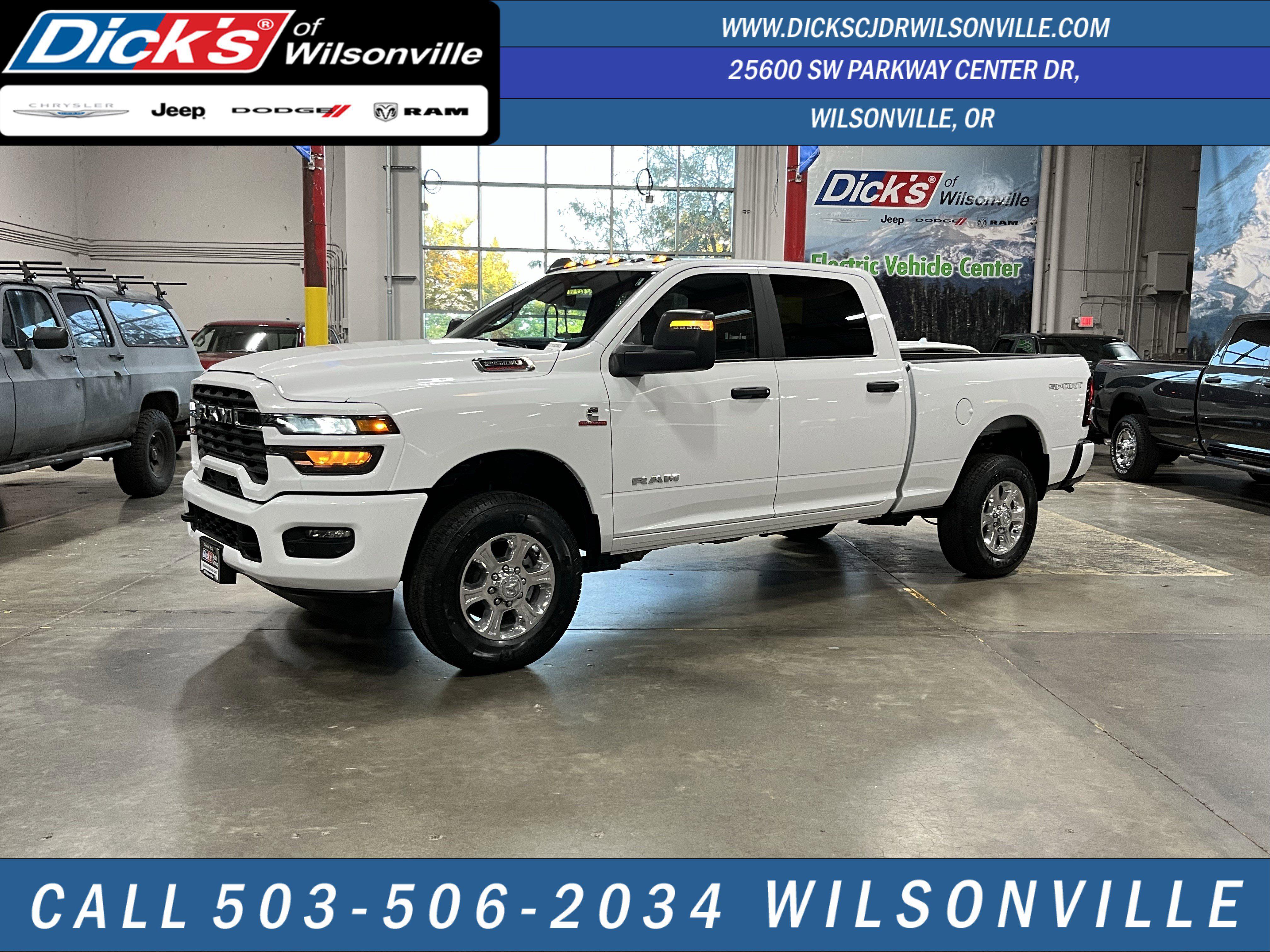 Bright White Clearcoat 4D Crew Cab 4WD 6.7L I6 8-Speed Automatic12 Touchscreen Display, 2 Way Rear Headrest Seat, 4 Way Front Headrests, 4-Wheel Disc Brakes, 40/20/40 Split Bench Seat, 4G LTE Wi-Fi Hot Spot, 5th Wheel/Gooseneck Towing Prep Group, 6 Speakers, ABS brakes, Air Conditioning, Alloy wheels, AM/FM radio: SiriusXM, Anti-Spin Differential Rear Axle, Apple CarPlay, Apple CarPlay/Android Auto, Auto Power-Folding Mirrors, Auto-Dimming Rear-View Mirror, Big Horn Level 1 Plus Equipment Group, Black Exterior Mirrors, Black Interior Accents, Body Color Grille-Surround, Brake assist, Bumpers: chrome, Center Hub, Clearance Lamps, Cloth 40/20/40 Bench Seat, Compass, Connectivity - US/Canada, Delay-off headlights, Disassociated Touchscreen Display, Driver door bin, Dual front impact airbags, Dual front side impact airbags, Dual Glove Boxes, Electronic Stability Control, Emergency Vehicle Alert System (EVAS), Exterior Mirrors Courtesy Lamps, Folding Flat Load Floor Storage, Footwell Courtesy Lamp, For Details, Visit DriveUconnect.com, For More Info, Call 800-643-2112, Front anti-roll bar, Front Center Armrest w/Storage, Front Center Seat Cushion Storage, Front fog lights, Front License Plate Bracket, Front reading lights, Front Seat Back Map Pockets, Fully automatic headlights, Glove Box Lamp, Google Android Auto, GPS Antenna Input, GPS Navigation, HD Radio, Heated door mirrors, Illuminated entry, LED Bed Lighting, Locking Lower Glove Box, Low tire pressure warning, Luxury Steering Wheel, Manual Adjust 4-Way Driver Seat, Manual Adjust 4-Way Front Passenger Seat, Mirror Running Lights, MOPAR Deployable Bed Step, Occupant sensing airbag, Off-Road Info Pages, Outside temperature display, Overhead airbag, Overhead console, Painted Front Bumper, Painted Rear Bumper, Panic alarm, ParkView Rear Back-Up Camera, Passenger door bin, Passenger vanity mirror, Power 2-Way Driver Lumbar Adjust, Power Adjust 8-Way Driver Seat, Power Adjust Mirrors, Power door mirrors, Power Heated Folding Telescopic Mirrors, Power steering, Power Telescoping Mirrors, Power windows, Power-Adjustable Convex Aux Mirrors, Premium Cloth 40/20/40 Bench Seat, Quick Order Package 24Z Big Horn, Radio data system, Rear 60/40 Folding Seat, Rear anti-roll bar, Rear Folding Seat, Rear seat center armrest, Rear step bumper, Rear window defroster, Remote keyless entry, Remote Start System, Remote USB Port - Charge Only, Security system, Selectable Tire Fill Alert, SiriusXM Radio Service, Speed control, Sport Appearance Package, Sport Decal, Steering Wheel Mounted Audio Controls, Storage Tray, Tachometer, Tilt steering wheel, Traction control, Trailer Tow Pages, Trip computer, Turn signal indicator mirrors, Variably intermittent wipers, Voltmeter, Wheels: 18 x 8.0 Polished Aluminum.Priced below KBB Fair Purchase Price!Come check out our Indoor Facility and experience the best buying experience in the NW! Call us at (503) 506-2034 For a FAST and EASY Buying Process, Straight Forward Pricing, Friendly & Knowledgeable Team, STRESS FREE FINANCING Bad Credit Wont Stop You Here. Price includes: $1000 - 2026 National Bonus Cash . Exp. 01/05/2026